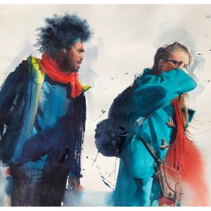 He paints mainly portraits and figures, he transforms ordinary people who travel in the city, almost invisible, into the main characters in his work. They are always telling a story with sensitivity and personality. His portrait feel alive and have a well balanced design, very loose but with enough detail to understand their features and mood, they have a soul and the story they tell feels like our own story.